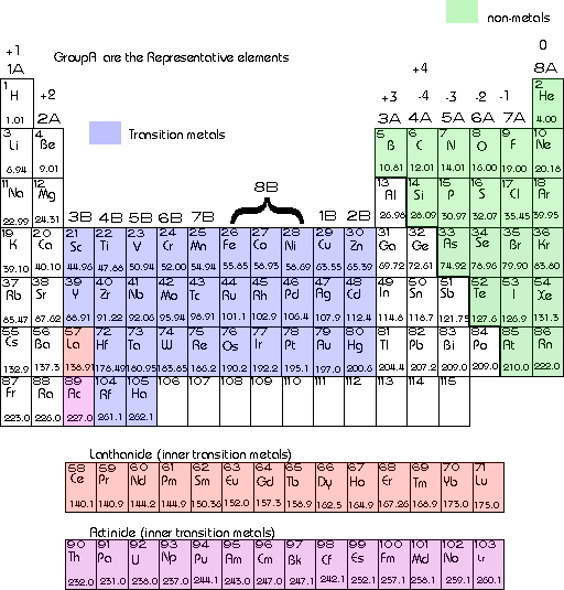 For writing chemical formulas it is important to make oneself familiar with the periodic table. The elements are arranged in rows and columns. These arrangements correspond to the chemical properties of the elements.